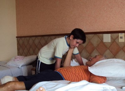 Depois que eu estava no chão, Flá e Dani e a Renata (a empregada) correram para ver o que tinha acontecido, porque eu só falei: “Eu caí”! Primeiro, estava doendo demais, eu só gemia. Depois, a gente começou a pensar como eu ia levantar. Não dava para ajoelhar, o dito doía demais. Elas não podiam me puxar pelos braços por causa da cirurgia. E eu não podia me apoiar nos braços, também por causa da supra-citada. Aí começamos a rir. Levei um tempão para me ligar que podia apoiar no outro joelho. Bem, consegui me colocar na vertical de novo.