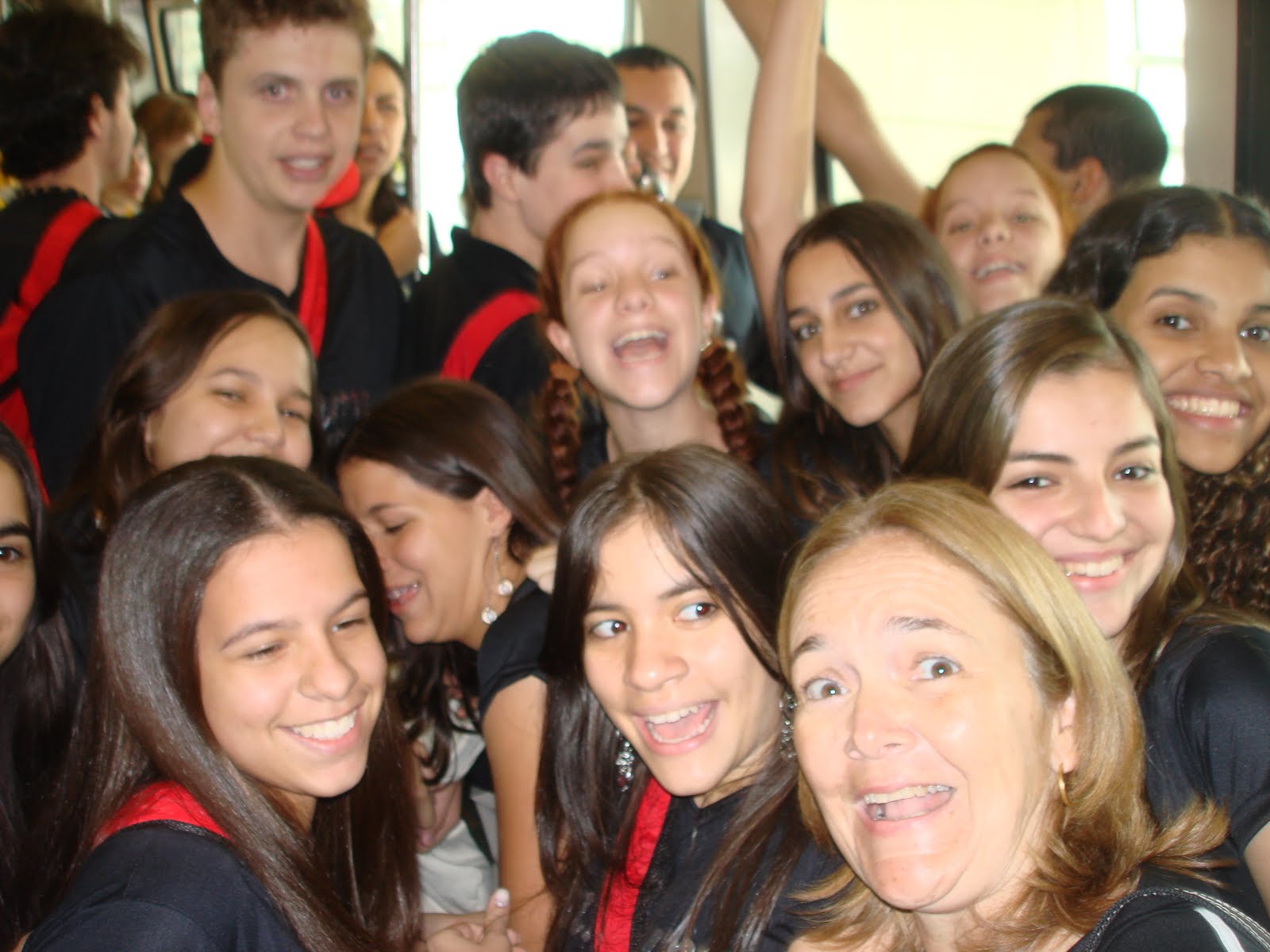 Flávia criou uma história engraçada. Renata, Júlia, Isabela, Amanda, Paulinha e Gui também faziam parte do grupo. Ela disse para eles que uma mulher chatíssima, chamada dona Laura, tinha entrado de última hora na excursão. Falou que a mulher ia atormentar todo mundo. Minha ida ficou em segredo e todo mundo temendo a tal dona Laura.